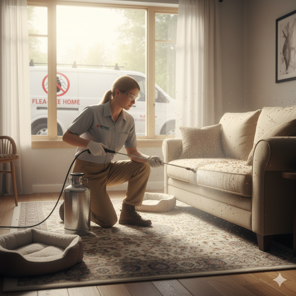 Experienced technicians providing thorough home flea extermination and rapid flea removal services.